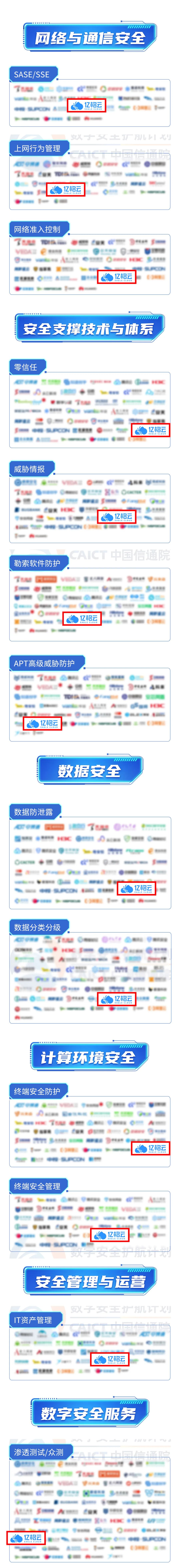 亿格云多年来在办公安全领域的深耕以及不断突破的产品力,获得了中国信通院的权威认可,成功入选数据安全、网络与通信安全、计算机环境安全、数字安全服务等六大安全领域,覆盖SASE、零信任、数据防泄漏、网络准入控制、终端安全防护、上网行为管理等13个细分赛道,充分凸显亿格云在办公安全板块的专业能力与技术优势。