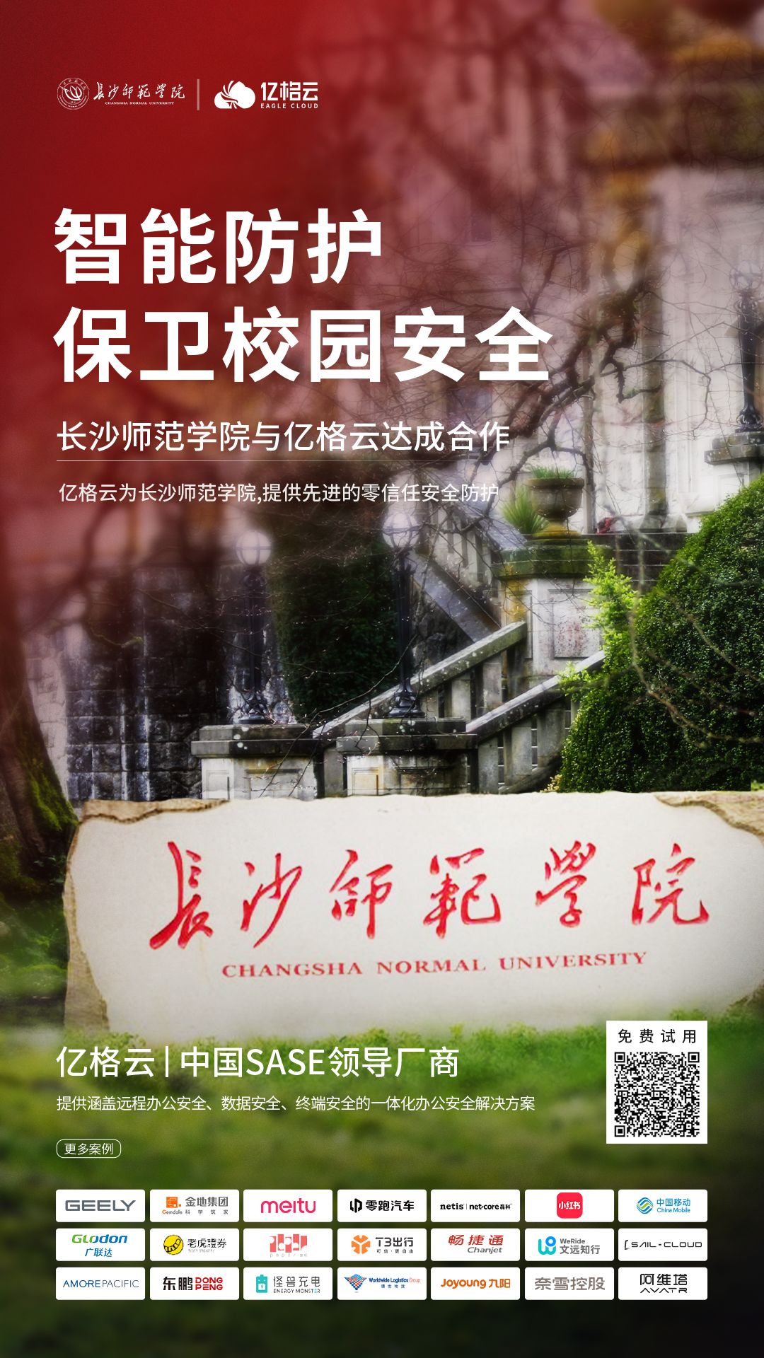 亿格云携手长沙师范学院,搭建下一代安全接入平台,基于云原生架构进行平台化建设,实现终端安全功能多合一、减轻运维压力,实现稳定、高效的接入访问。