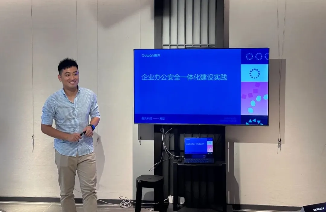 会议伊始,趣丸科技信息安全负责人 郑欢为在场嘉宾带来了深度分享,分享了趣丸科技在办公安全建设方面的落地经验。